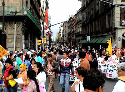 Eran apenas las diez de la mañana y el paso por las avenidas Madero y 20 de Noviembre que desembocan en la Plaza de la Constitución ya era prácticamente imposible. Por dichas avenidas y de sus calles aledañas, fluían, como torrente, miles de personas que, apresuradas corrían para alcanzar, – “aunque sea un lugarcito”- decían unos, para poder ver mejor.